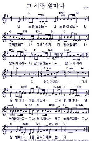 3. 코드/박자 : G코드, 4/4박자 찬양