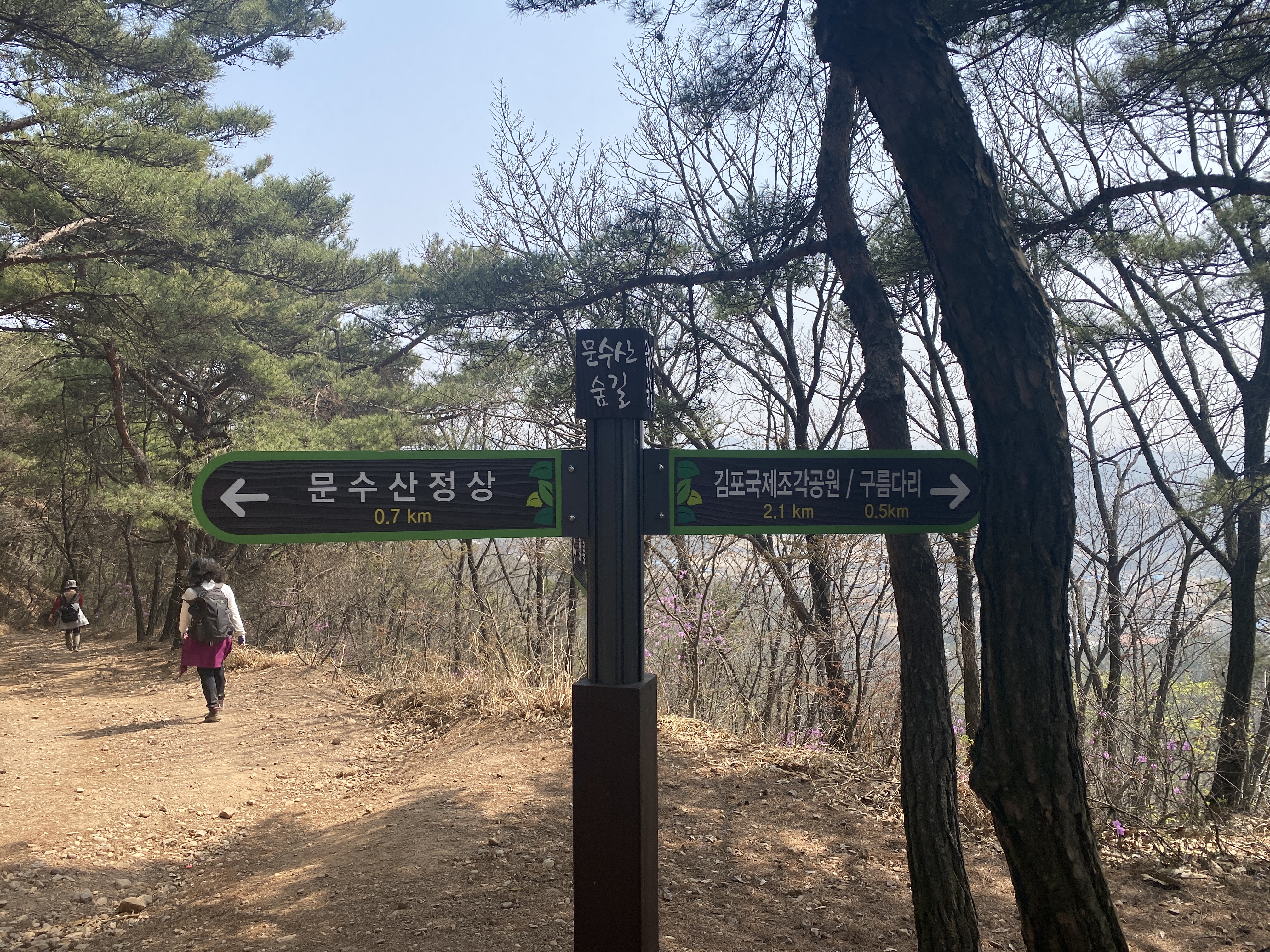 여기에서 우측으로 빠져서 쭉 걸어가면 드디어 문수산으로 넘어가는 구름 다리를 만날 수 있어요!