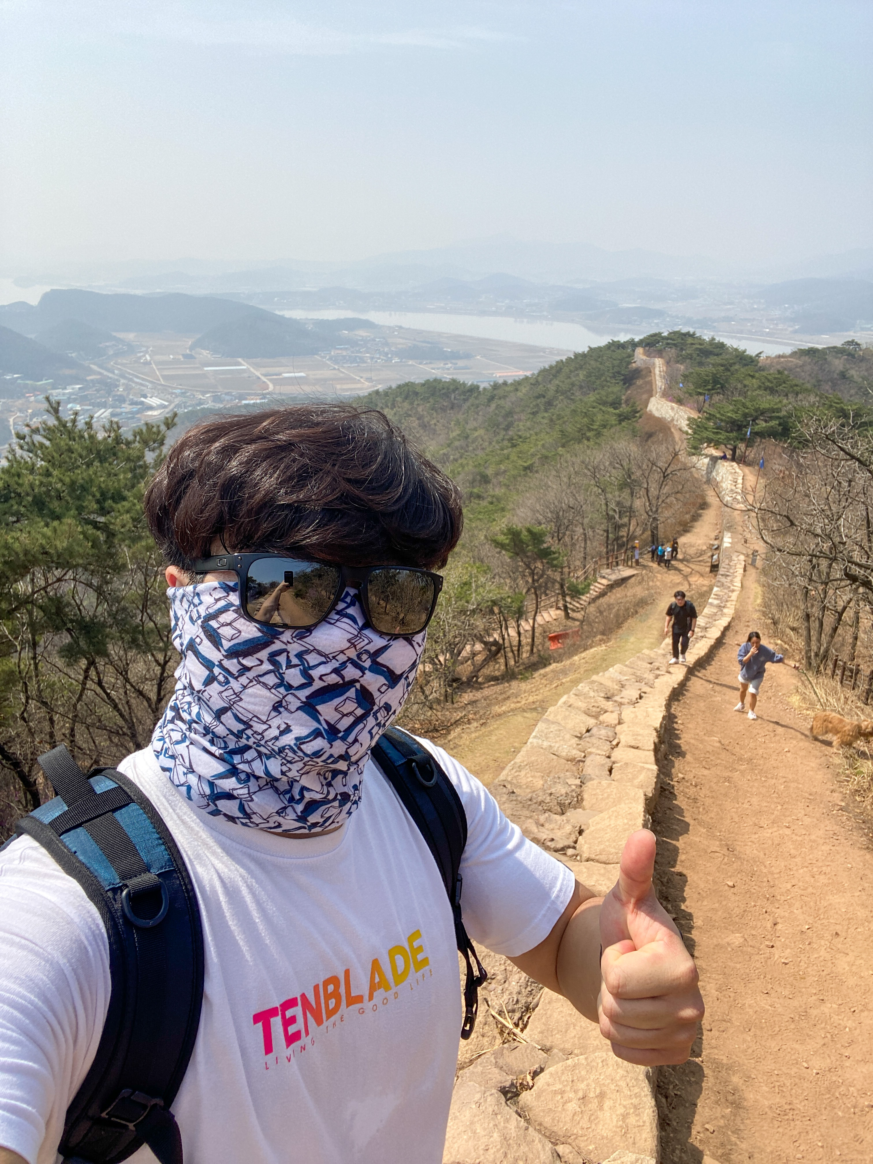 올라갈 때는 힘들어서 땅만 보고 걸었는데 내려갈 때 비로소 보이는 아름다운 꽃들과 자연이 너무 아름다웠습니다. 오늘 미세먼지만 없었다면 정말 좋았을 텐데 하는 생각이 드네요 ㅎㅎ 제가 풋살 하다가 발목을 다쳐서 하산할 때는 천천히 내려왔습니다. 다른 분들은 저보다 시간이 더 짧게 걸리실 것 같아요. 얼른 다이어트해서 살을 빼야 발목에 무리가 덜 갈 것 같습니다. 마지막으로 저의 인증샷! 그리고 오늘 운동 총 칼로리 공개합니다!