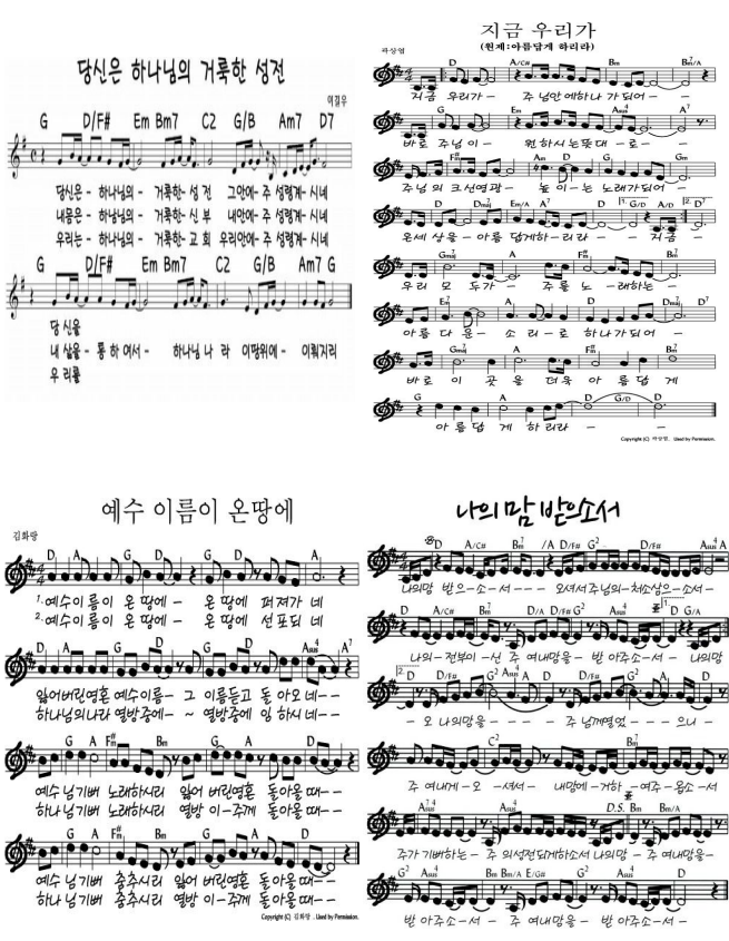 마지막 찬양은 D코드 찬양으로 쭉 이어 갑니다.
