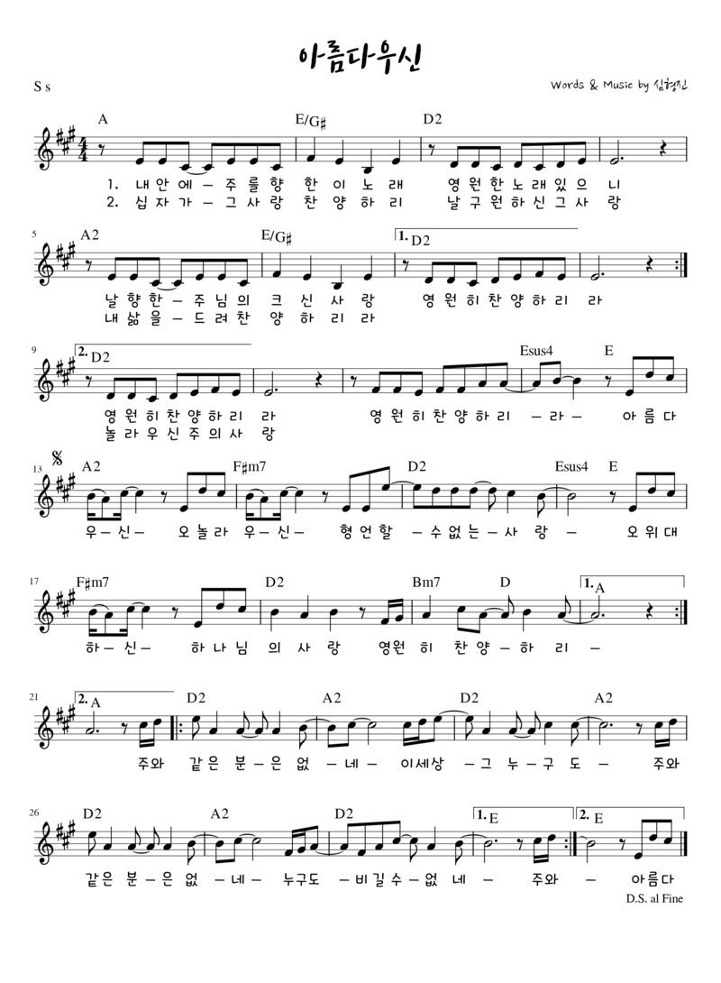 이번에 소개할 찬양은 제가 정말 좋아한다고 몇 번이나 고백했던 심형진 목사님의 '아름다우신'입니다.
