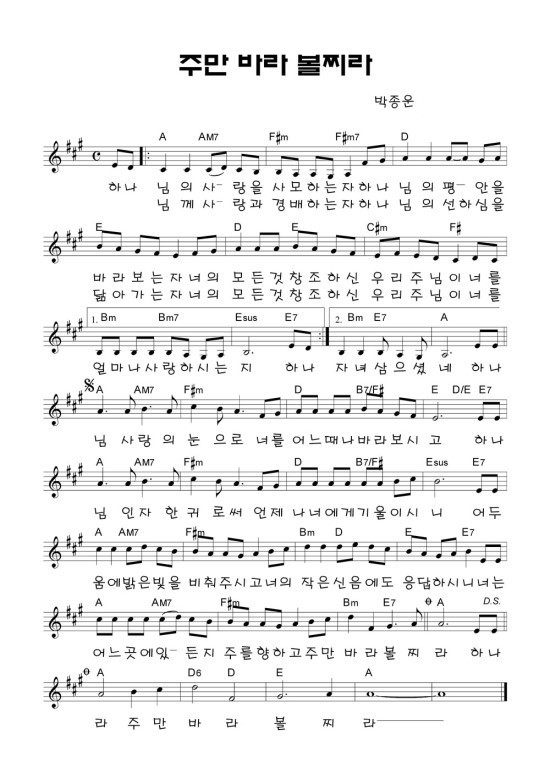이번에 소개할 찬양은 한국교회 예배 찬양의 명곡! '주만 바라볼찌라' 입니다. 맞춤법 상으로는 '주만 바라 볼지라'가 맞는 게 아닌가? 싶으면서도 뭔가 힘을 줘서 주님을 바라보겠습니다 라는 느낌을 주는 것 같습니다. 이 곡은 멜로디만 들어도 우리나라 찬양임을 직감할 수 있고 가사는 마치 부모가 자녀에게 편지를 쓴 것처럼 사랑을 담은 가사입니다.