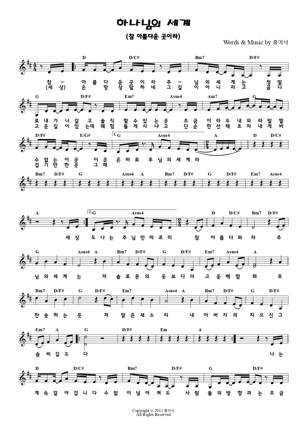 3. 박자/코드 : 4/4박자, D코드 찬양