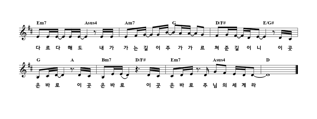 3. 박자/코드 : 4/4박자, D코드 찬양