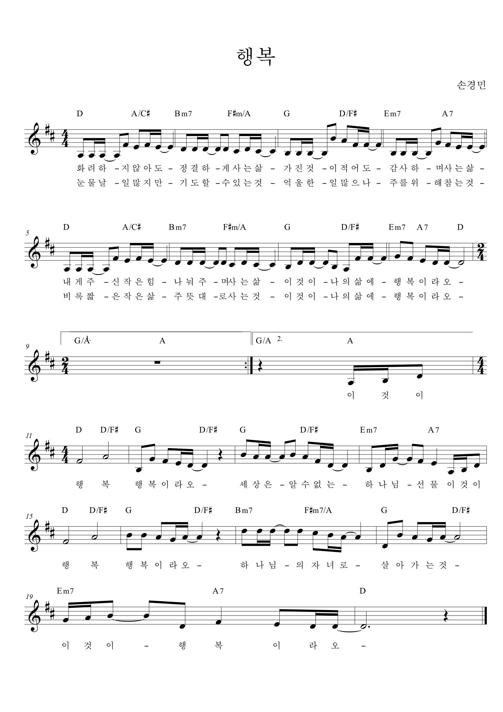 3. 박자/코드 : 4/4박자, D코드 찬양