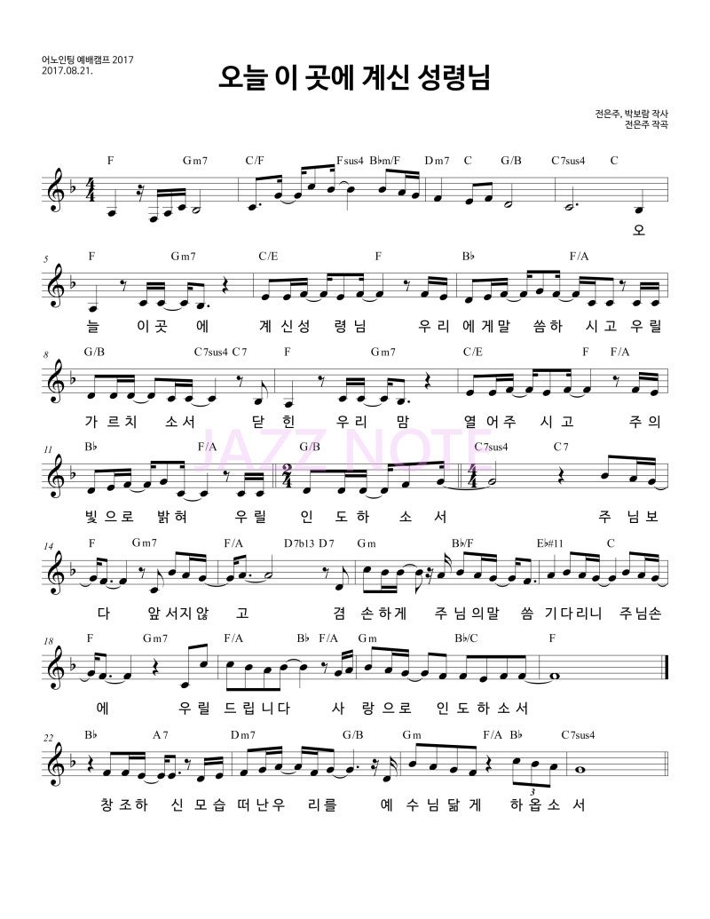 이 찬양은 어노인팅 예배캠프 2017 앨범에 수록되어 있으며, 전은주 작곡, 전은주/박보람 작사입니다.