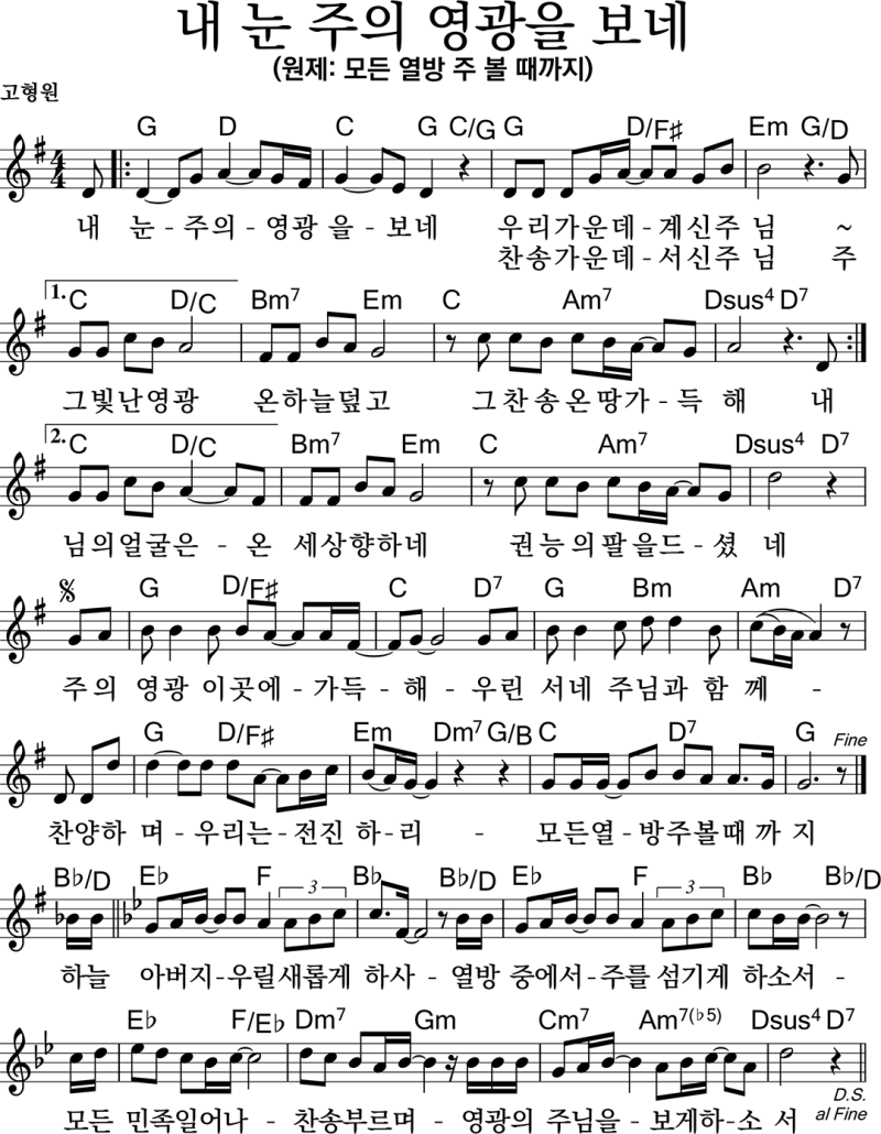 3. 박자/코드 : 4/4박자, G코드 찬양