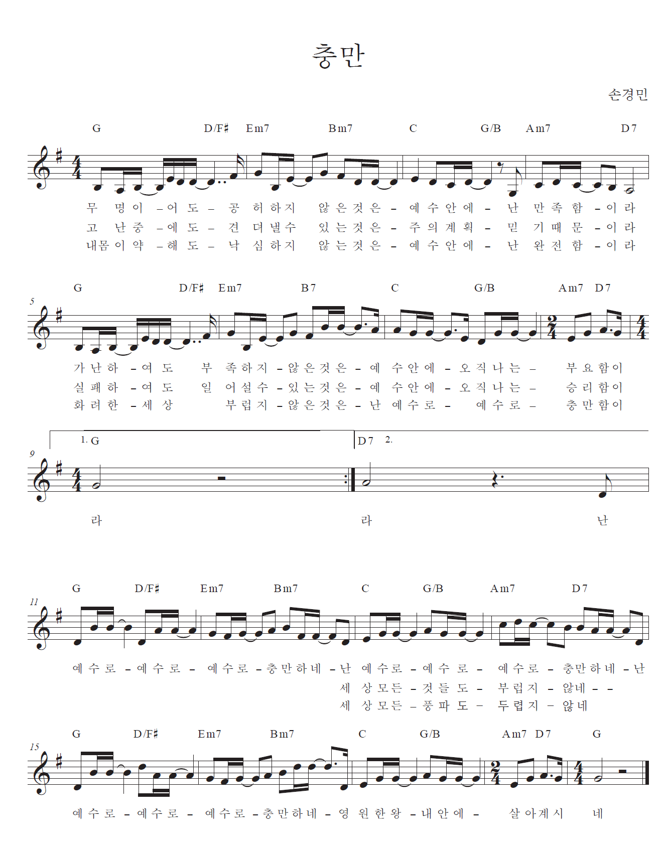 3. 박자/코드 : 4/4박자, G코드 찬양