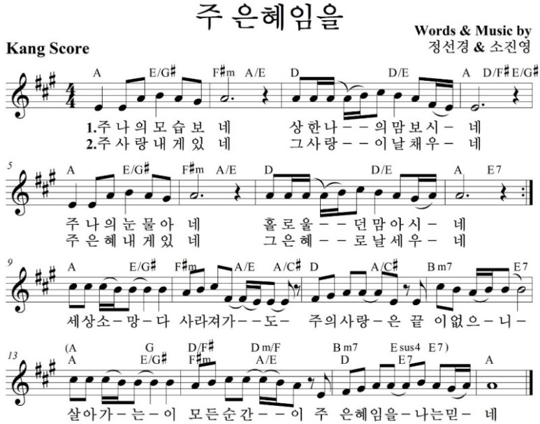 이번에 소개할 찬양은 '주 은혜임을'이라는 찬양입니다. G코드뿐만 아니라 F코드, A코드 악보도 있어서 콘티에 넣기도 좋습니다. 제가 굉장히 마음의 어려움을 겪고 있을 때 이 찬양을 처음 듣게 되었습니다. 심지어 처음 들으면서 가사 때문에 눈물을 흘릴 수밖에 없었던 곡입니다. 이 찬양을 들어보신 분들은 알겠지만 굉장히 위로가 되는 찬양입니다.