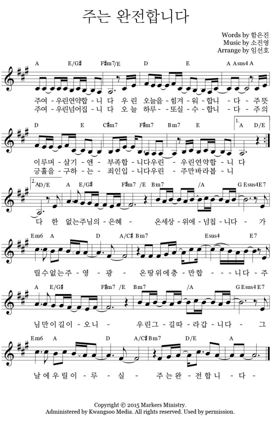 공교롭게도 성경에서 완전수라 불리는 숫자 7인데, 제목도 '주는 완전합니다'이면서 7집 앨범 7번째 트랙에 수록되었네요. '완전 찬양'이라 불러도 될 것 같습니다.